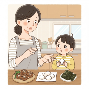 「よく噛んで食べようね」と声をかけるだけでなく、食事の時間を十分に確保して、ゆっくりと噛んで食べる習慣をつけさせましょう。